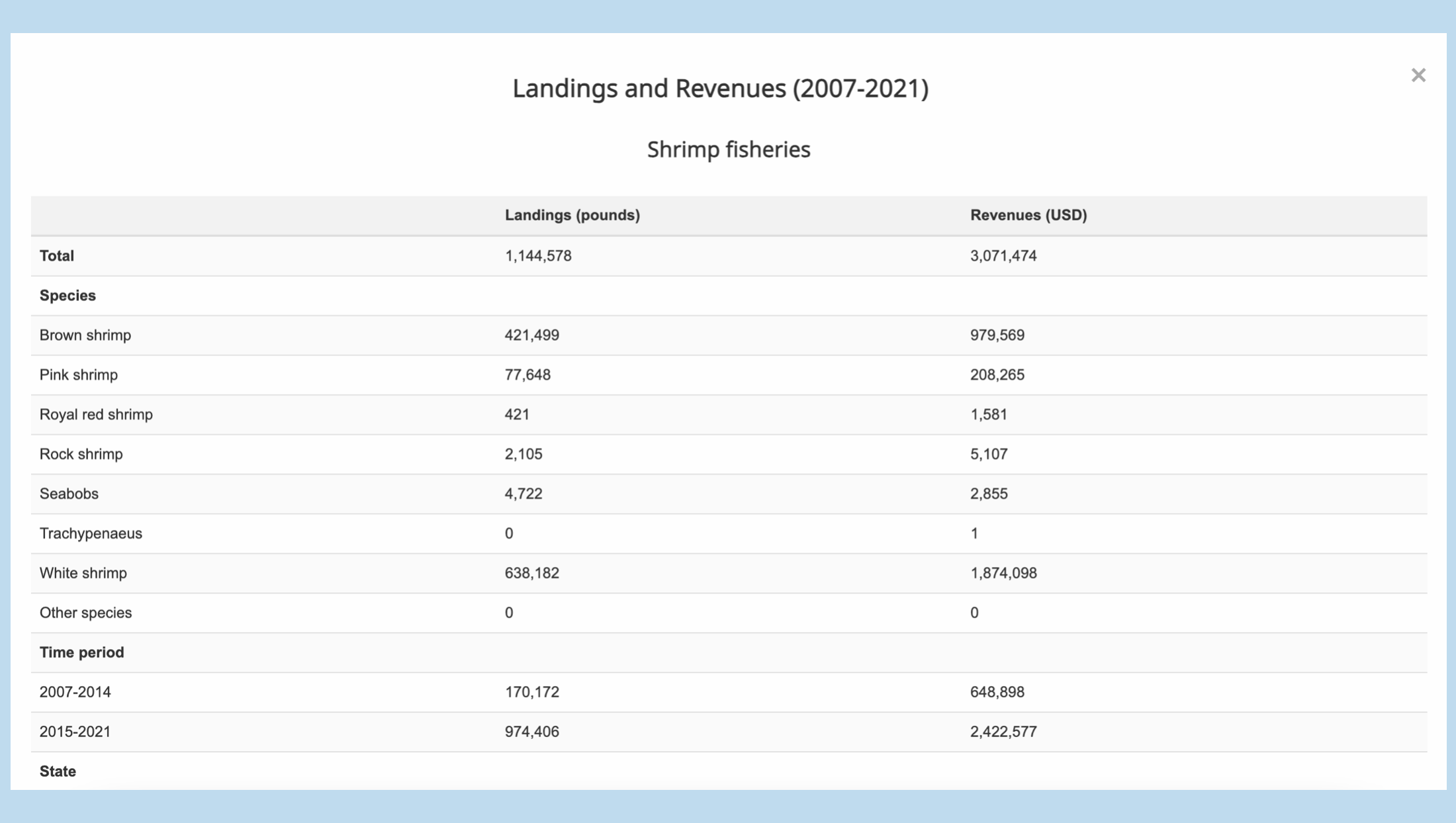 all the landings and revenues accrued by that region. You can download the information as a csv